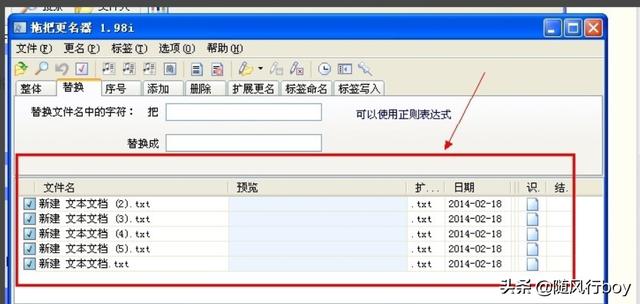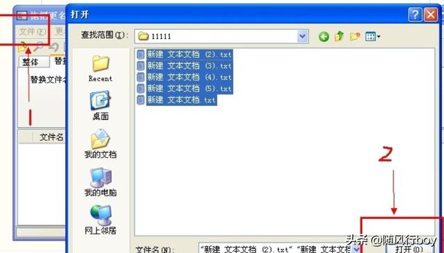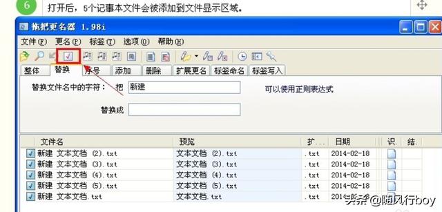 五. 点击拖把更名器左上角“打开”,将刚才新建的5个记事本文件打开;
