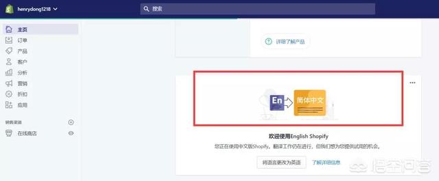 据此,你的shopify独立站就建站完成了!后台英文看不懂的话,直接切换成现在的中文版本!