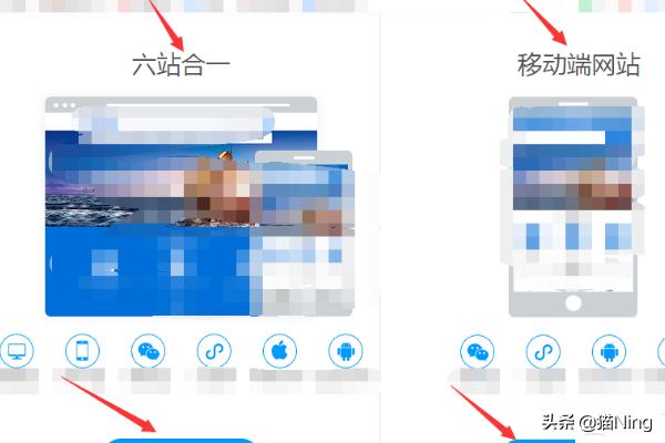 7、选择类型后,选择建站类型,其中包含六合一和移动端网站,六合一包含手机端和电脑端建站,移动端建站只能手机端使用,选择其中一个点击下一步。