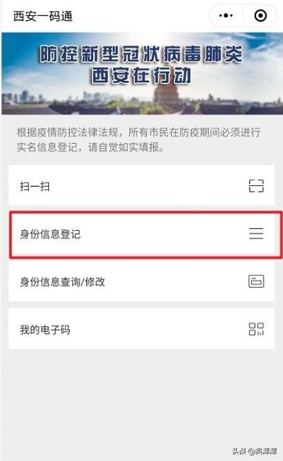 第四步、进入一码通界面,选择身份信息登记。