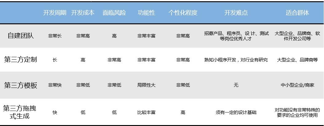 一、小程序开发方式与成本
